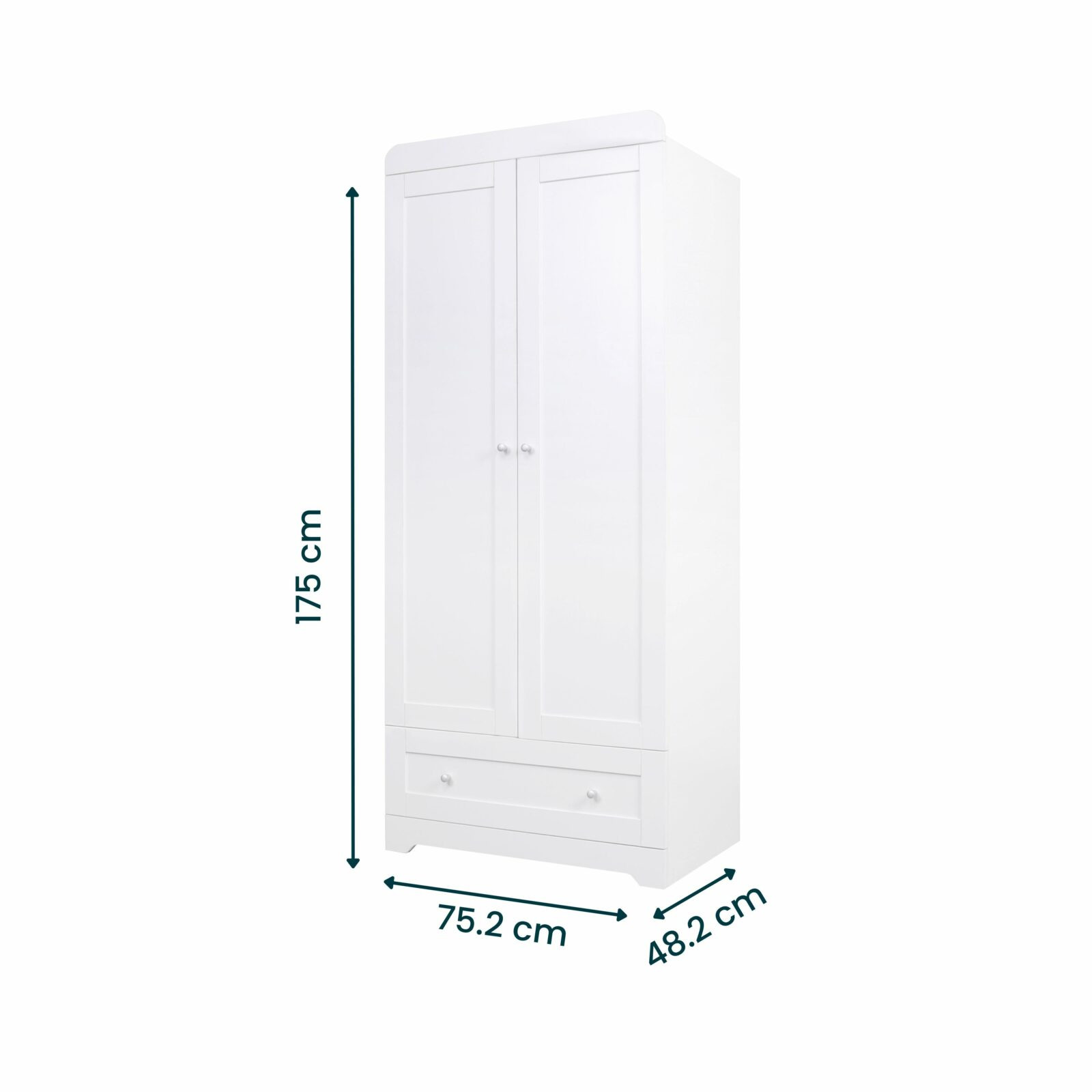• Wardrobe features a full width drawer and hanging rail plus a handy shelf so plenty of storage space