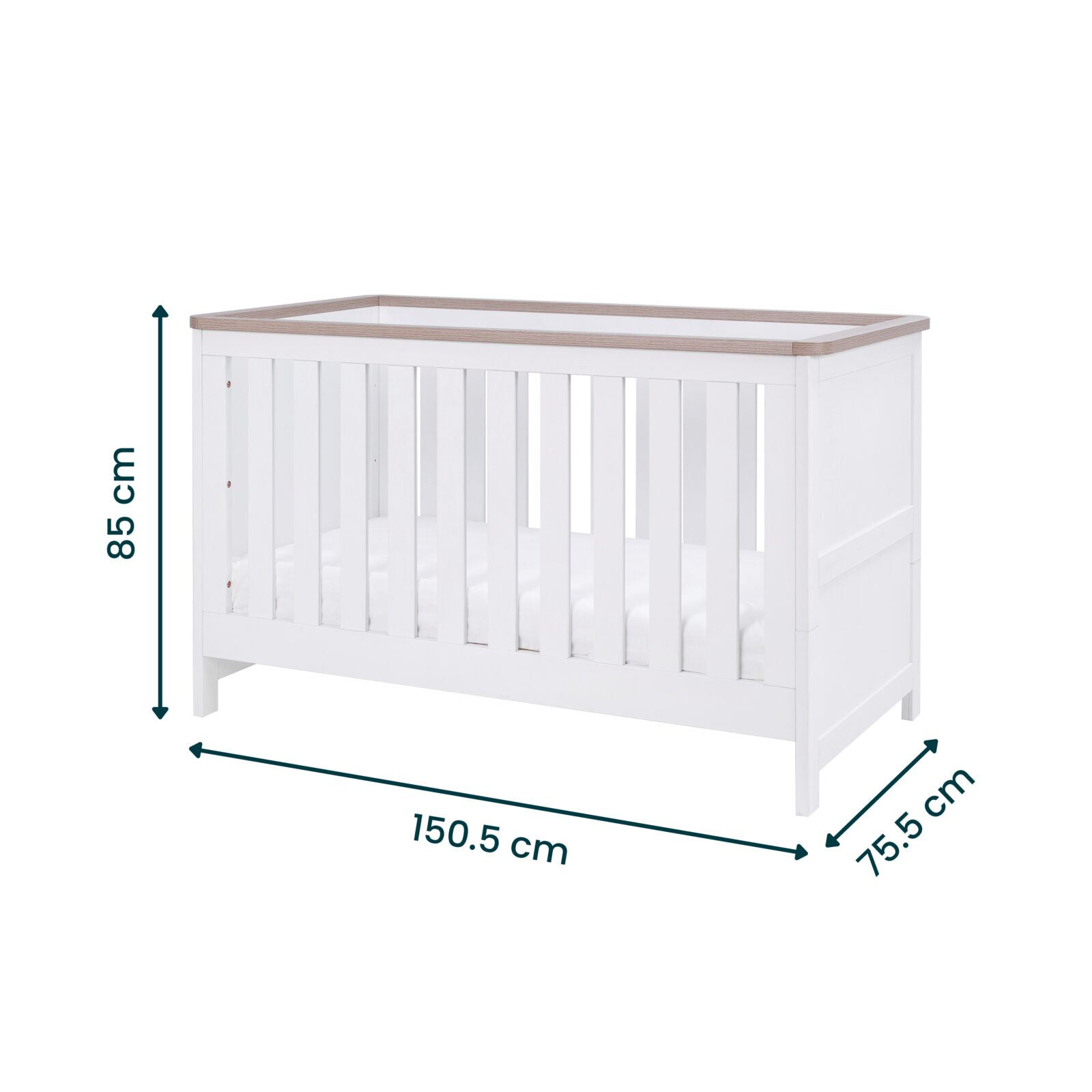 Cot Bed Dimensions: H85 x L150.5 x W75.6 cm